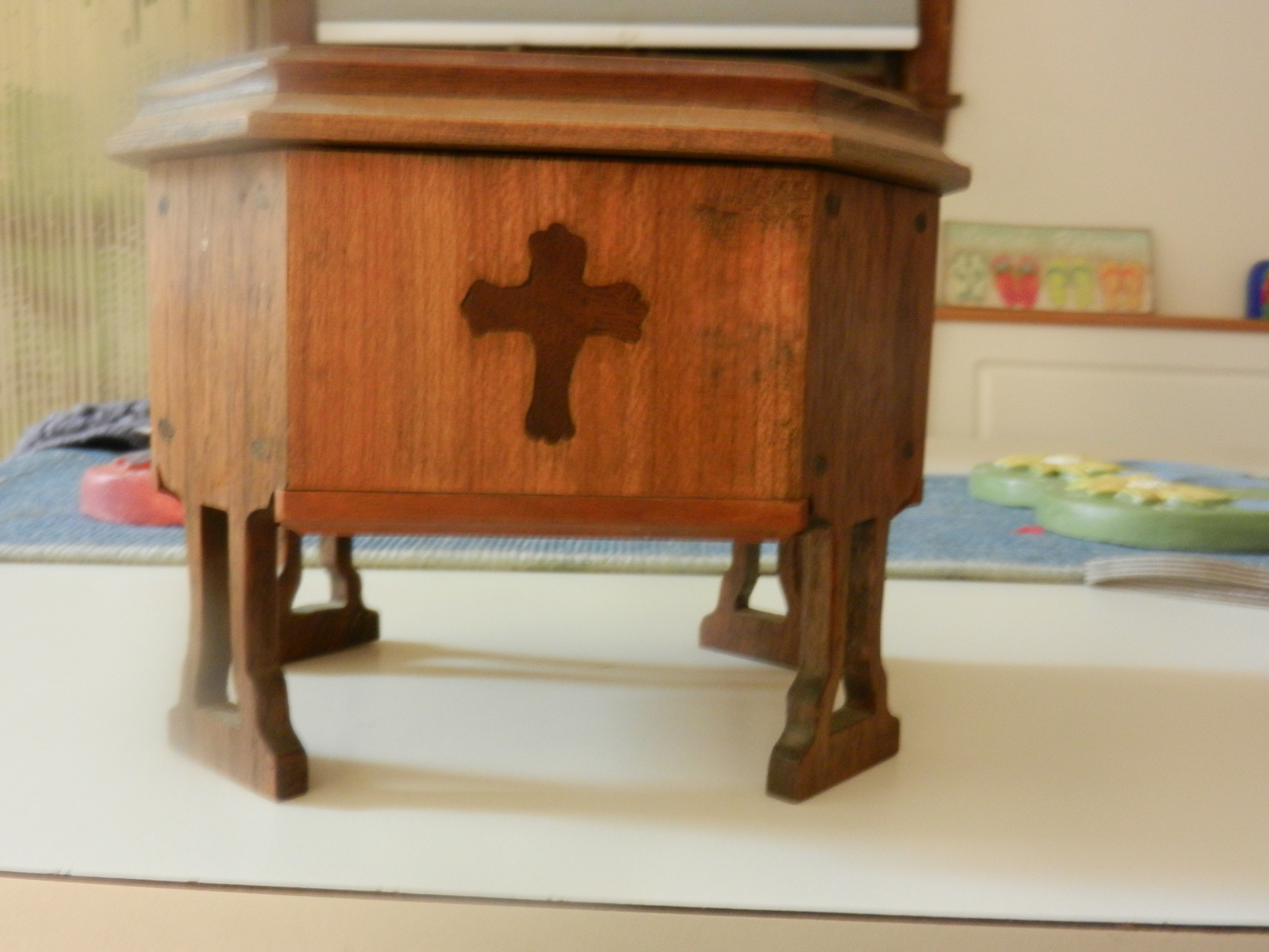 5. My Cross Treasure box. A dear man-made it for me when I lived in Virginia. It is hand-made and no nails were used. It reminds me of him and the power of forgiveness. God used me in his life while I was pastoring. I pray for and think about him when I look at it. He is still faithfully serving the Lord.