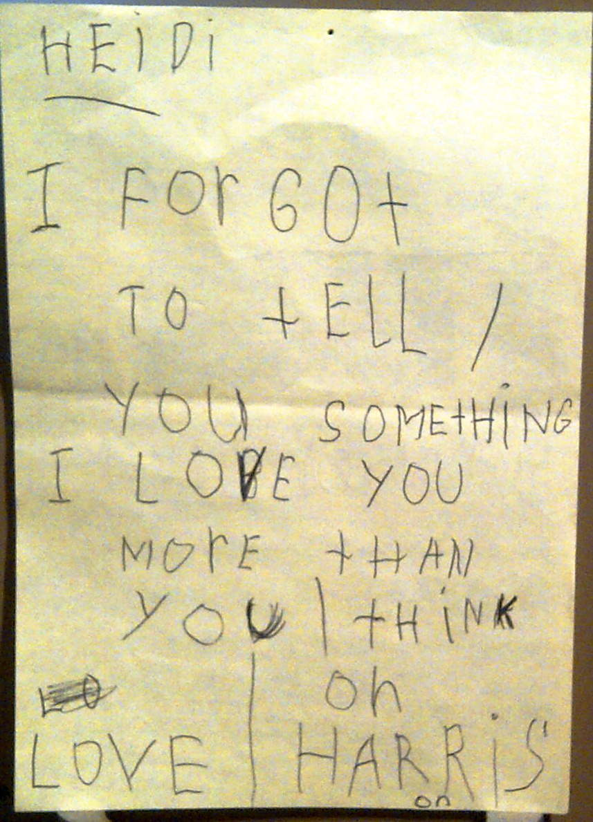 14. A note I received from my nephew, Harrison, while I was in college. I still have it.