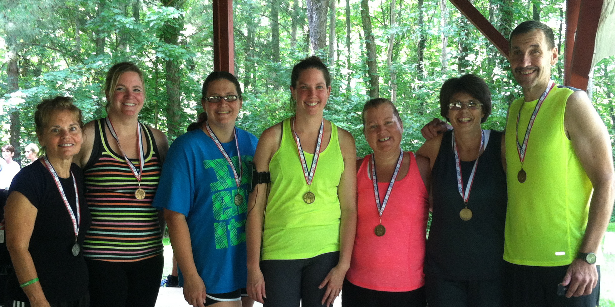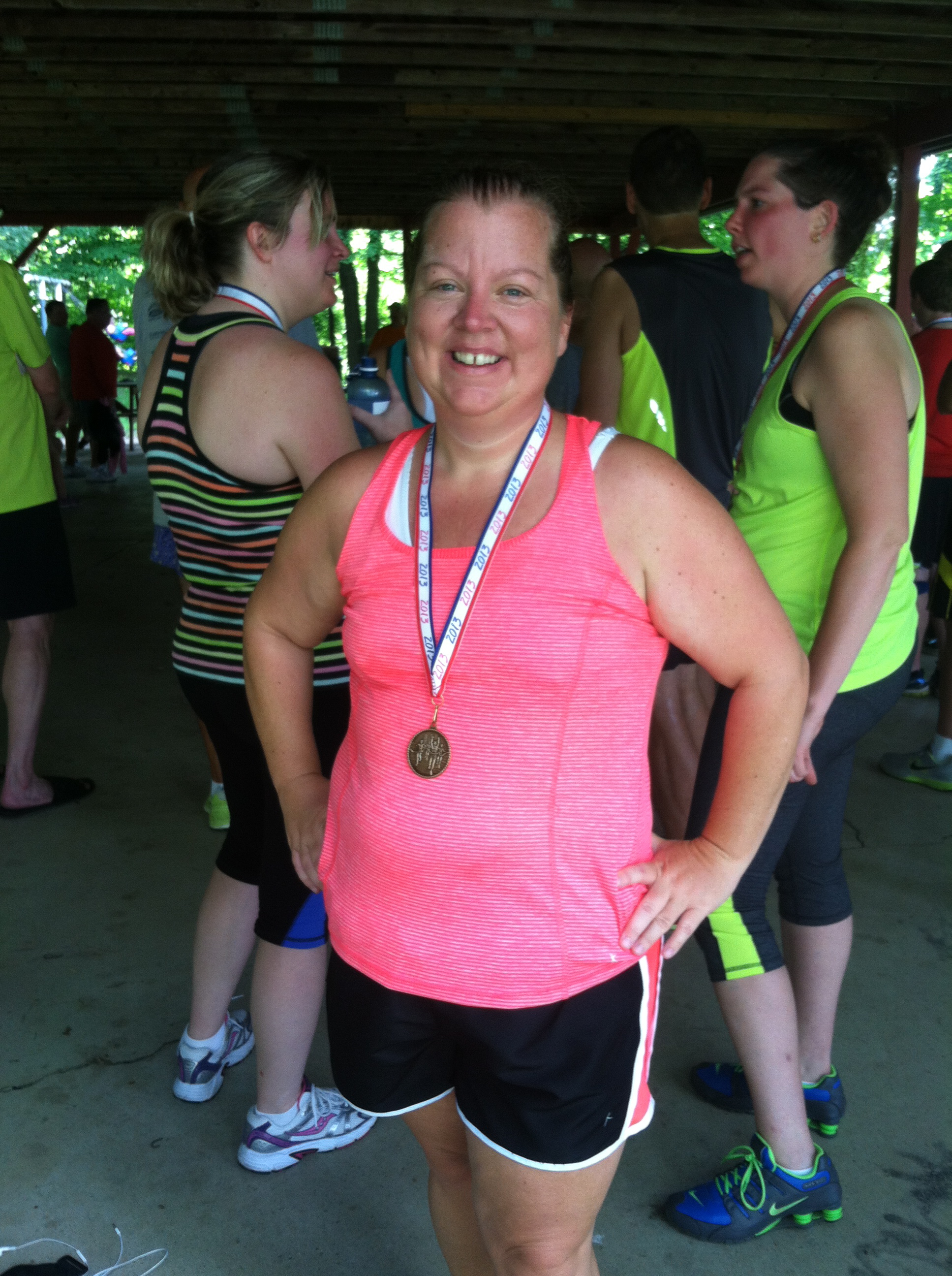 I could feel the stuff just leaving me as my feet pounded the pavement. And I finished. Without stopping. I was 7th from the bottom. And I was SO ok with that! One of my other friends from the PT Crew, who also ran it, had a very difficult time. It was hilly and humid. But she had her best time! We knew that some of the PT Crew would place so we all stayed for the awards ceremony.