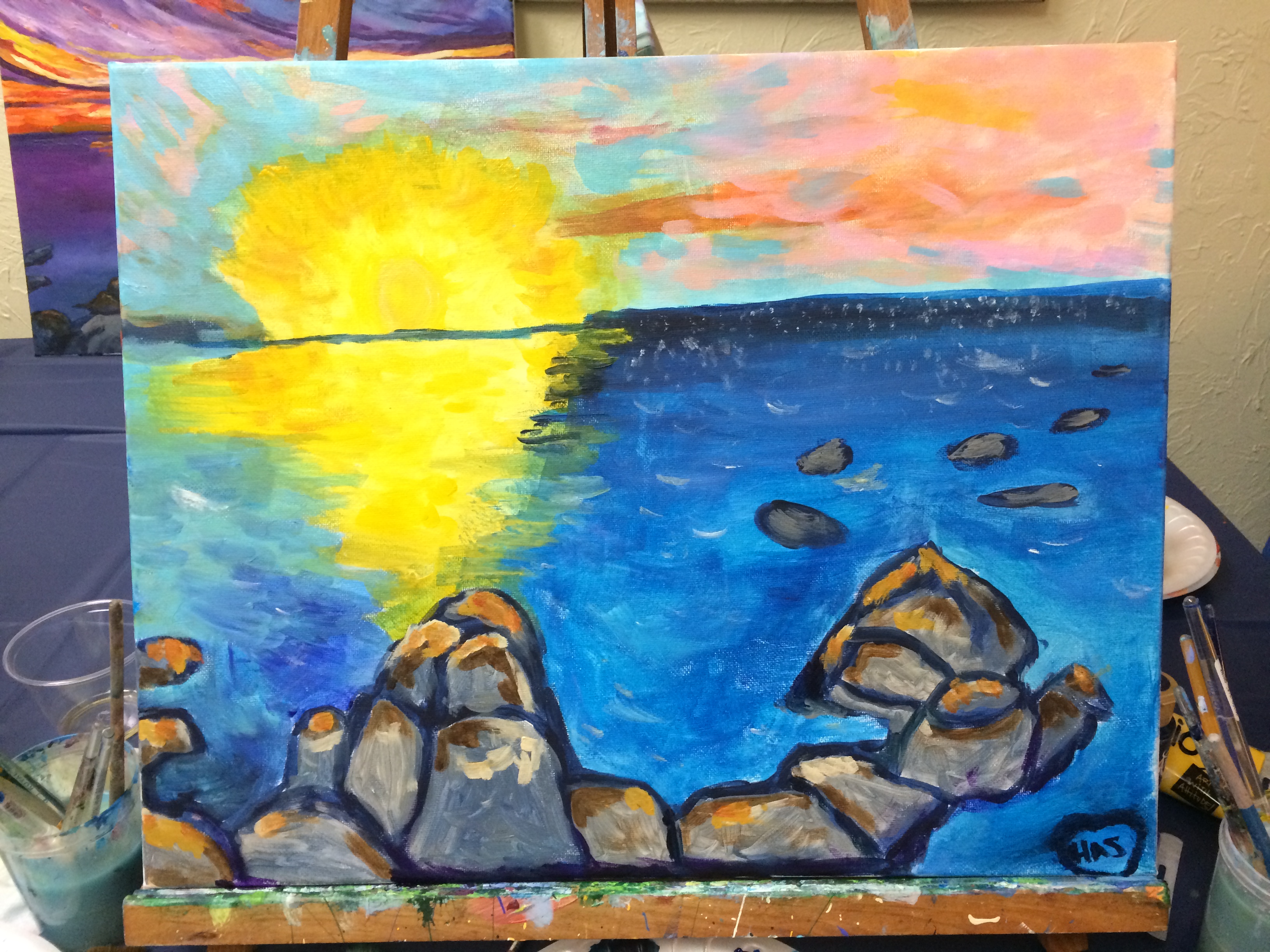 I have taken up painting. And I cannot believe how much I love it! Last fall I went to one of those classes in which friends get together and paint a picture. I had a lot of fun doing it and it was so relaxing. So this year as I was goal setting, I decided I would try painting on my own. I have this driving desire to keep my brain fresh. (And I’m reading a fascinating book on the brain and how you can create new grooves and stimulate different parts of it. I have said it before and will state it again…I am a nerd). I believe you keep your brain fresh by trying and learning new things. So this year it is painting.