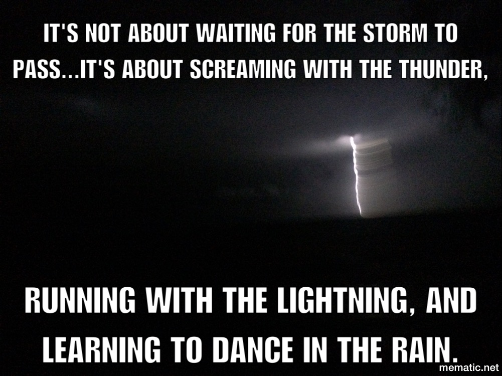 As the storm grew in intensity, the wind began to blow hard. I have no idea why but we ran down to the water’s edge! I think we were going to make sand angels in the sand. The wind was whipping the sand so fast and furious it felt like it was cutting our skin! At one point the wind emptied a nearby garbage can and we were being hit with garbage. Finally, rain drops began to fall. We got in the car and drove to another beach that has a cliff that overlooks the lake. Once we got out of the car we ran down the hill. It felt like we were part of the storm. We literally danced in the rain. My nieces were running up and down the hill competing with the noise of the thunder. I know this sounds so crazy and weird but it was so in the moment and so freeing. And it made me feel so ALIVE. A couple of weeks later when we went back to the beach to watch the meteor showers and for a midnight pizza picnic the girls said the night we watched the storm roll in was one of the best moments of their whole lives. I would agree.